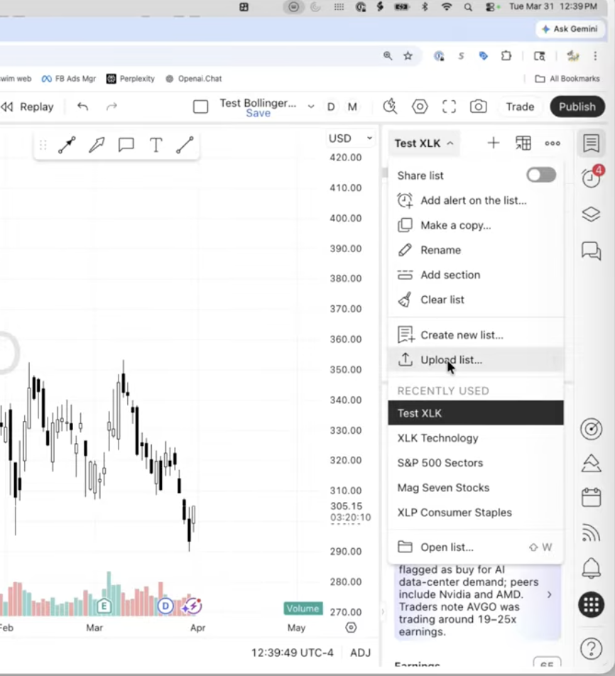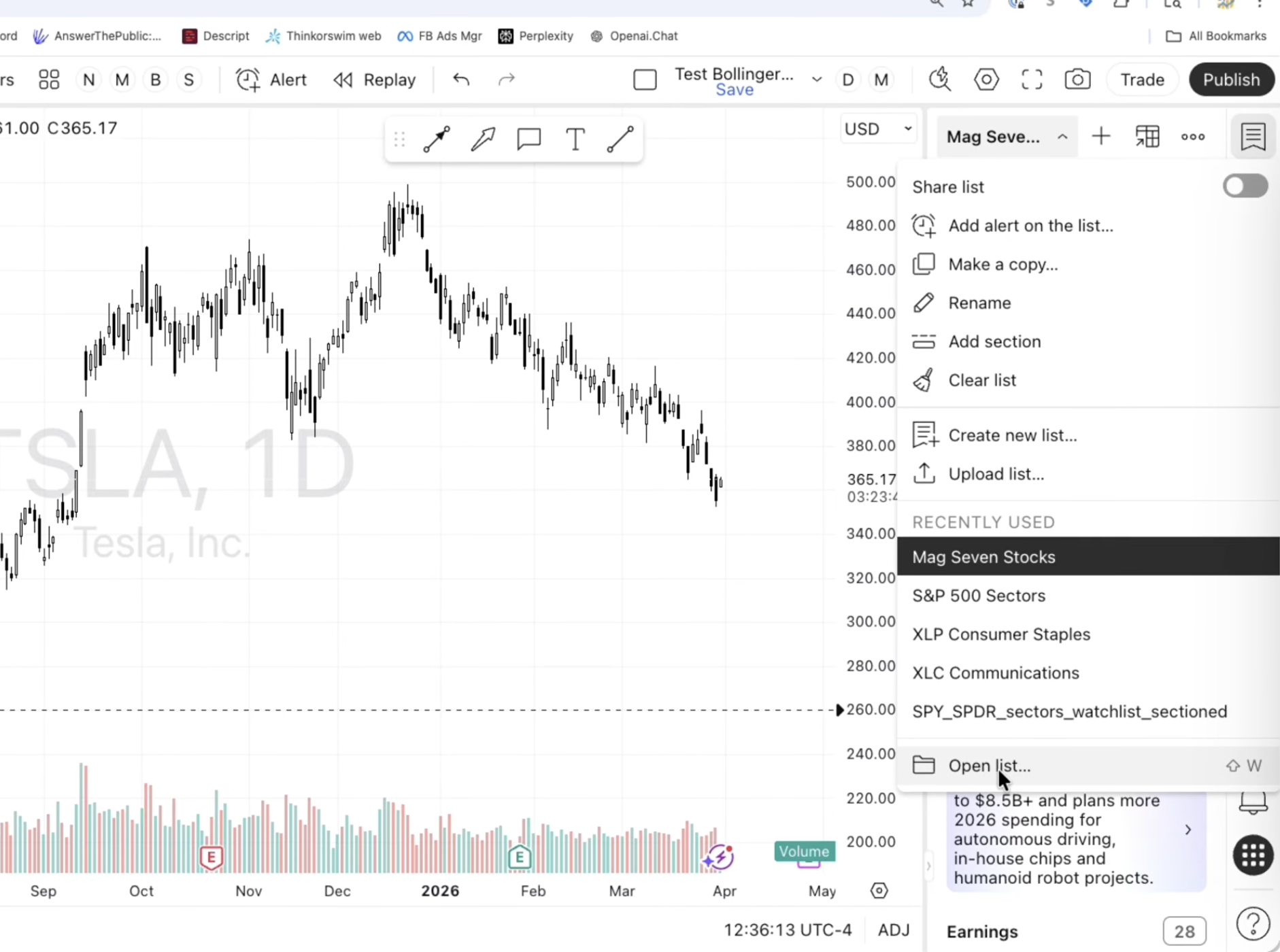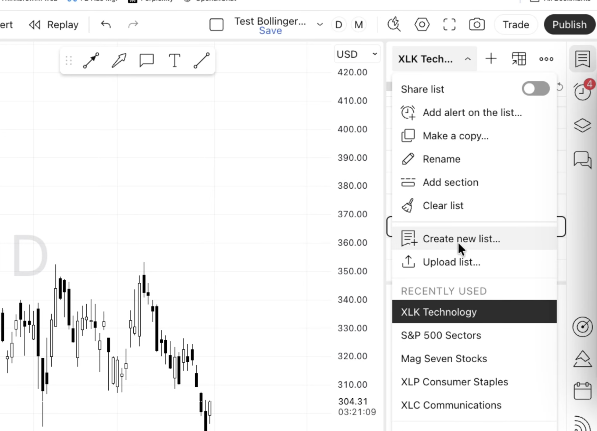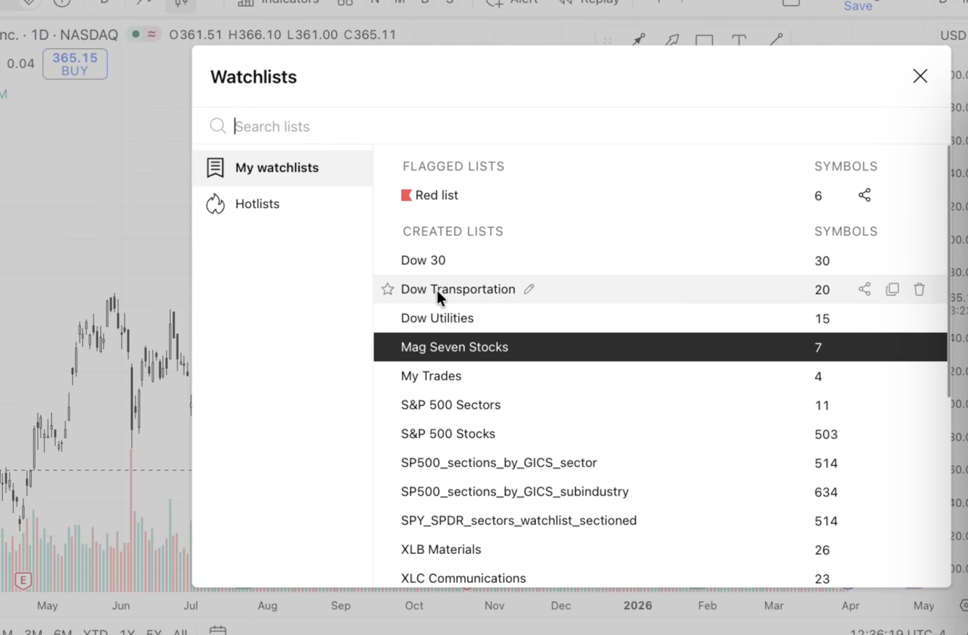 Watchlists can be found in the upper righthand corner of the TradingView chart.